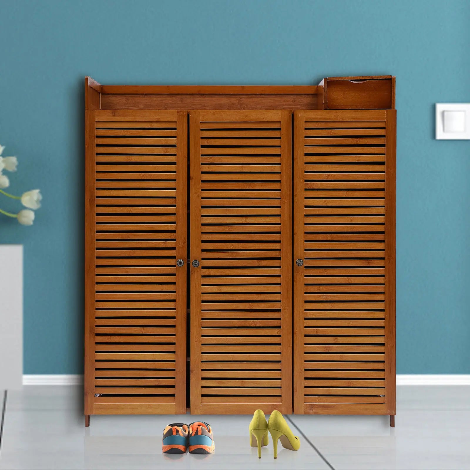 4-Tier Bamboo Shoe Rack Storage Organizer Cabinet