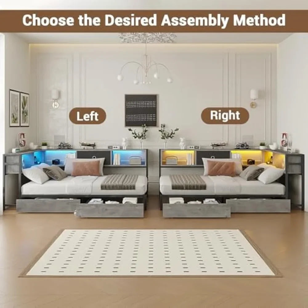 Corner Bed Frame Twin Size with Bookcase